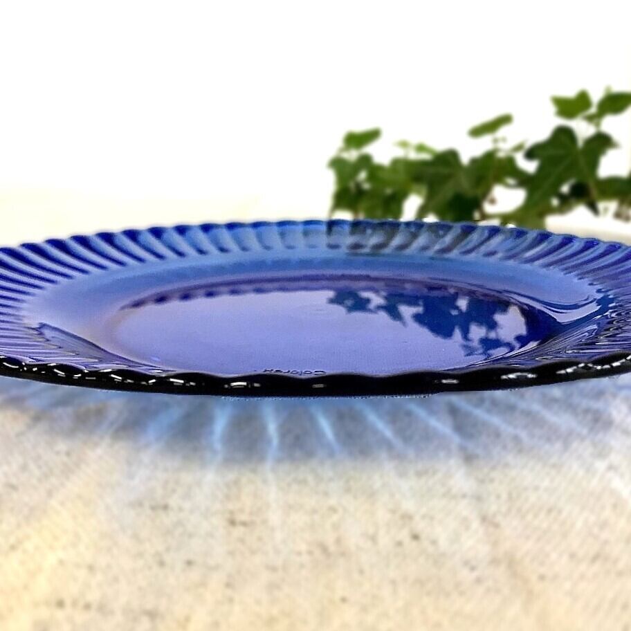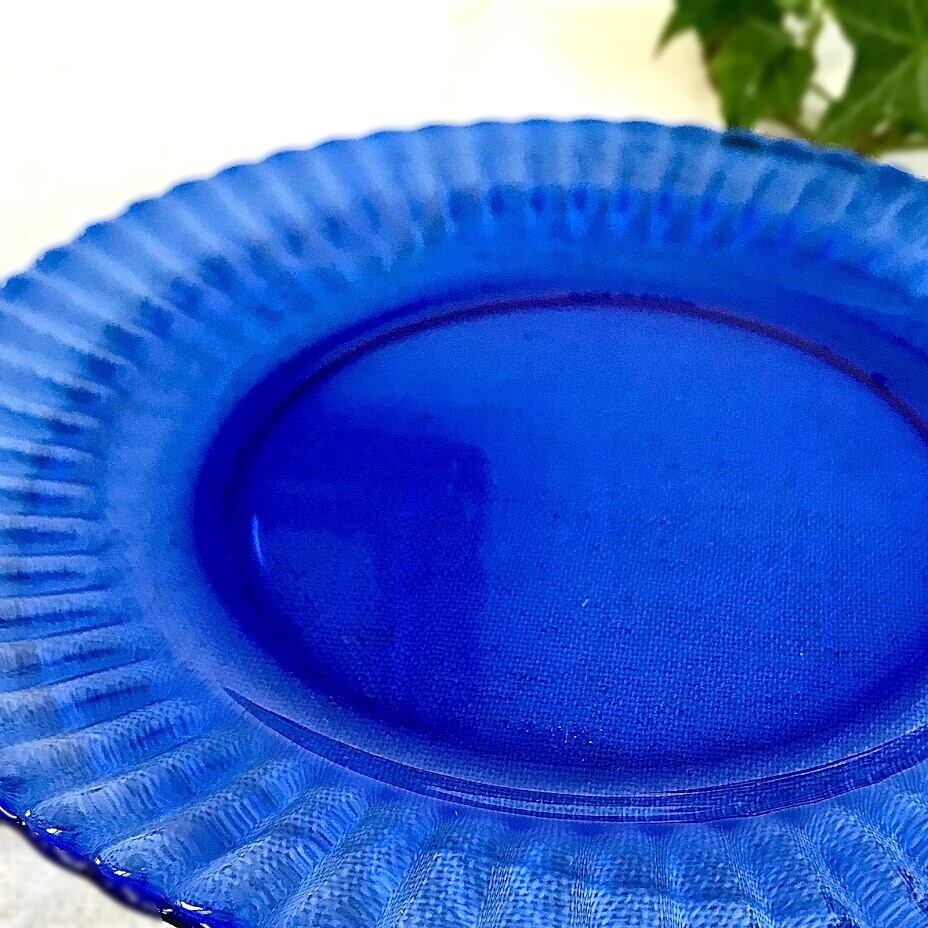 鮮やかなブルーのディナープレート。
